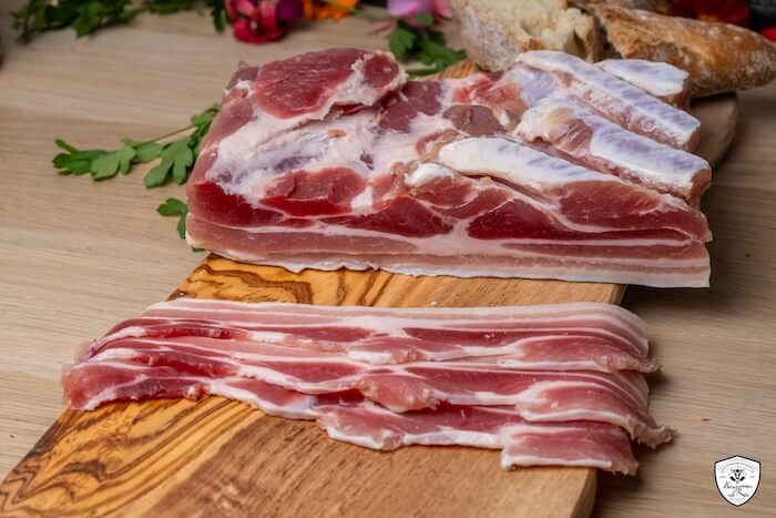 Le lard demi-sel, légèrement salé, est une charcuterie incontournable, parfaite pour accompagner vos plats ou en fines tranches sur du pain.