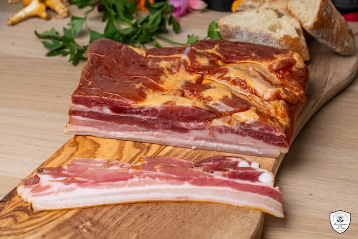 Le lard fumé apporte une saveur riche et profonde, idéal pour agrémenter vos plats cuisinés ou pour être dégusté tel quel.