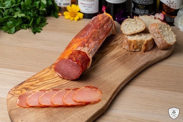 Jambon d’Ardenne fumé, une charcuterie pleine de caractère, idéale pour des plats de viande ou en sandwich.